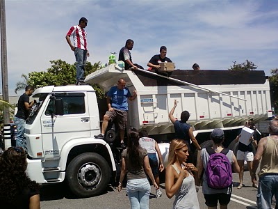 A quantidade de donativos e voluntários no Barra Shopping era bastante grande e a equipe da GloboNews estava no local para registrar a força da divulgação através do twitter. Por volta das 12 horas o comboio com 40 carros, 3 caminhões lotados de donativos e o ônibus partiu em direção à Teresópolis chegando lá por volta das 15 horas.